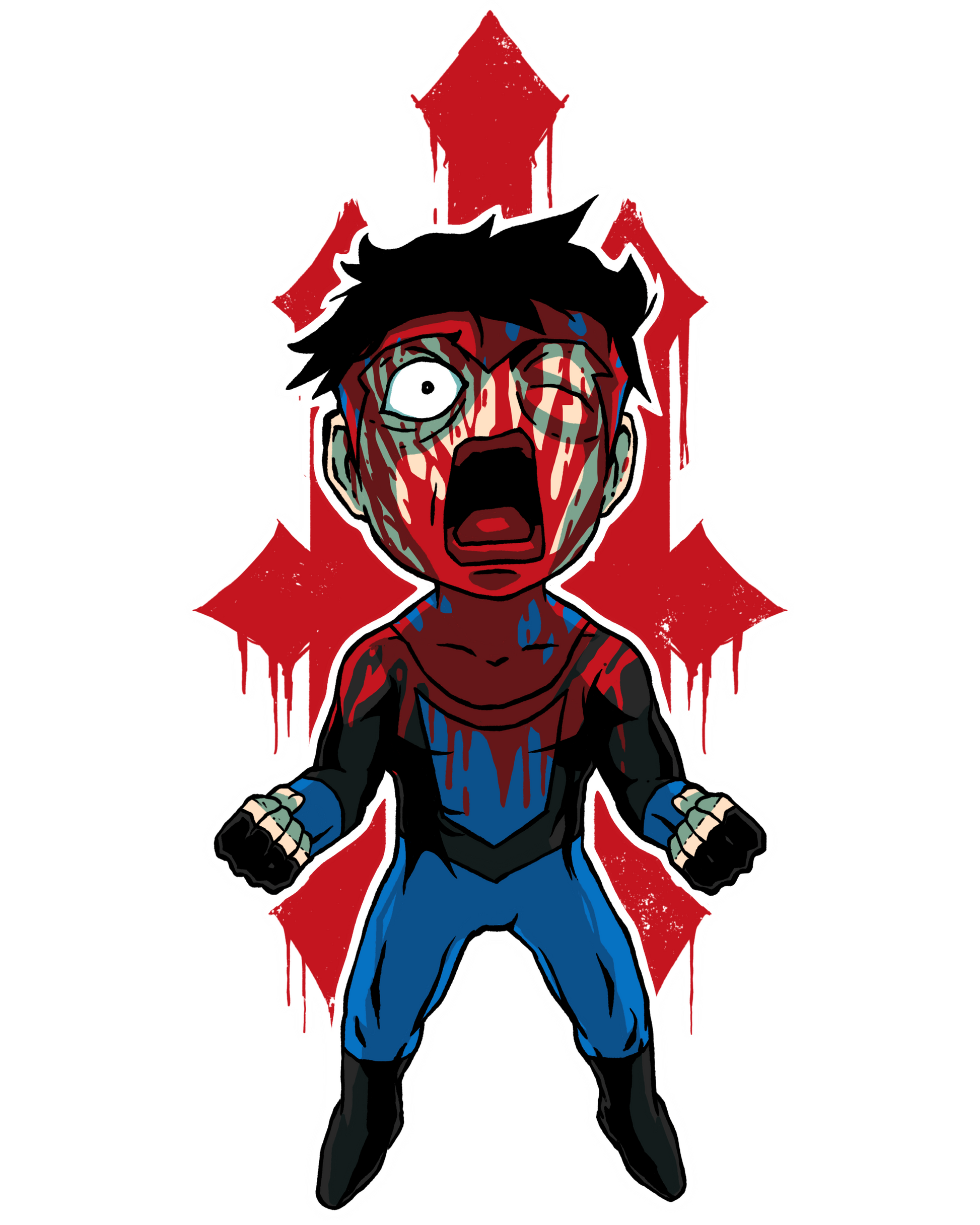 Show off your love for Invincible with the Innermost Hate "RAGE" Sticker, featuring a custom-drawn chibi-style version of your favorite hero—complete with a splash of blood for that signature brutal touch. It’s the perfect blend of cute and chaos, made for fans who appreciate the softer side of savagery.