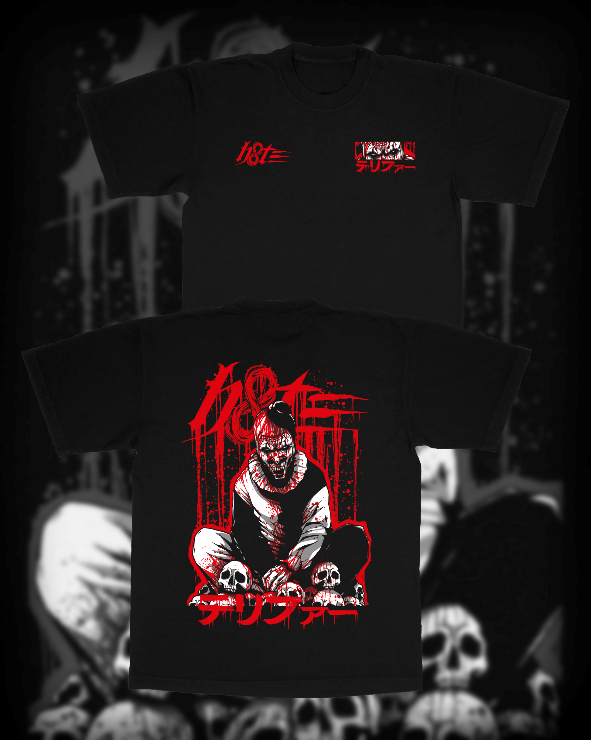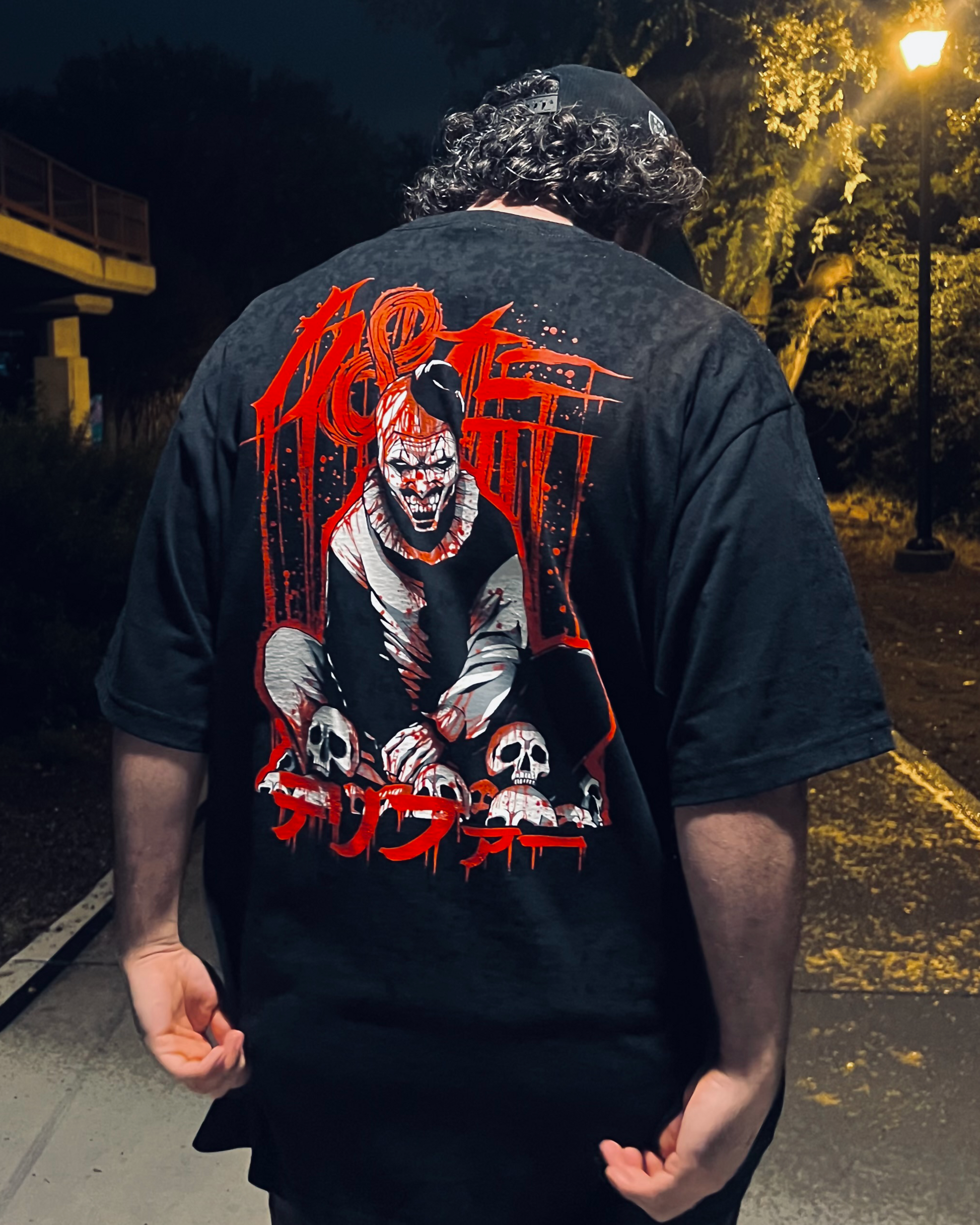 The INNERMOST HATE "TERRIFY" tee features a custom-drawn sadistic clown design inspired by the "Terrifier" series. Screen printed in vivid, blood-drenched detail on a 7.5oz Max Heavyweight Shaka Wear tee, this shirt is thick, durable, and made to last.